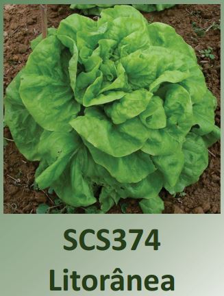 O cultivar SCS374 Litorânea é uma alface lisa, resultante de um prolongado trabalho de seleção de plantas a partir do cultivar Empasc 357-Litoral realizado pela Epagri/Estação Experimental de Itajaí (EEI). A planta comercial apresenta em média 312 gramas de peso e 44 folhas, baixa suscetibilidade ao míldio, ciclo médio. A emissão do pendão floral sob dias longo é tardia.